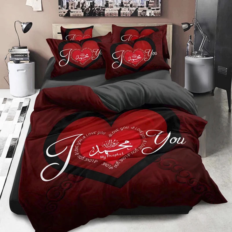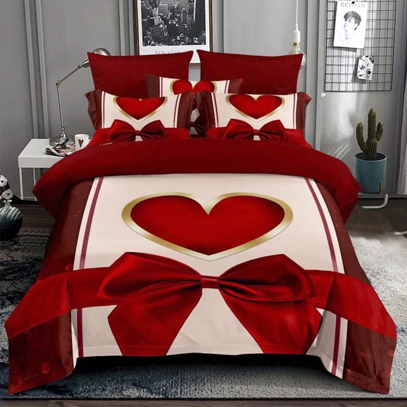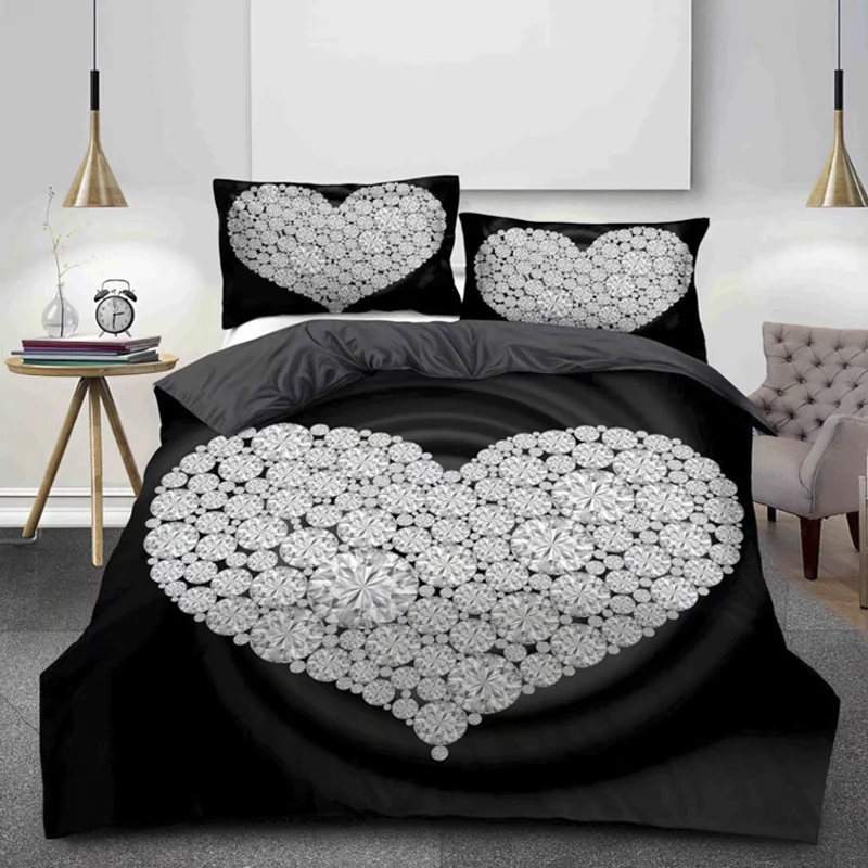 Shiny Diamond Design Duvet Cover 100% Microfiber Warm Bed Sheets Red Bedding Set 3D Digital Print Bedsheets